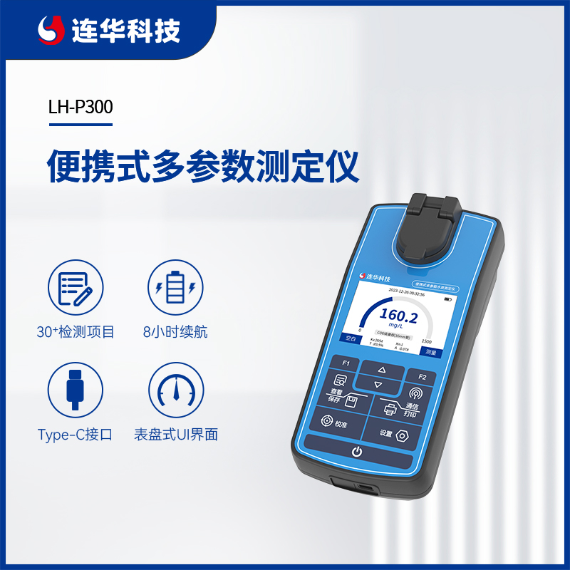LH-P300是一款經濟型便攜式多參數水質測定儀,能夠快速、準確地測量水樣中的COD、氨氮、總磷、總氮、有機污染物及無機污染物等多項參數,可滿足對水體富營養化關鍵性氮、磷類指標的檢測需求。儀器小巧輕便,操作簡單功能齊全,具有極高的性價比。