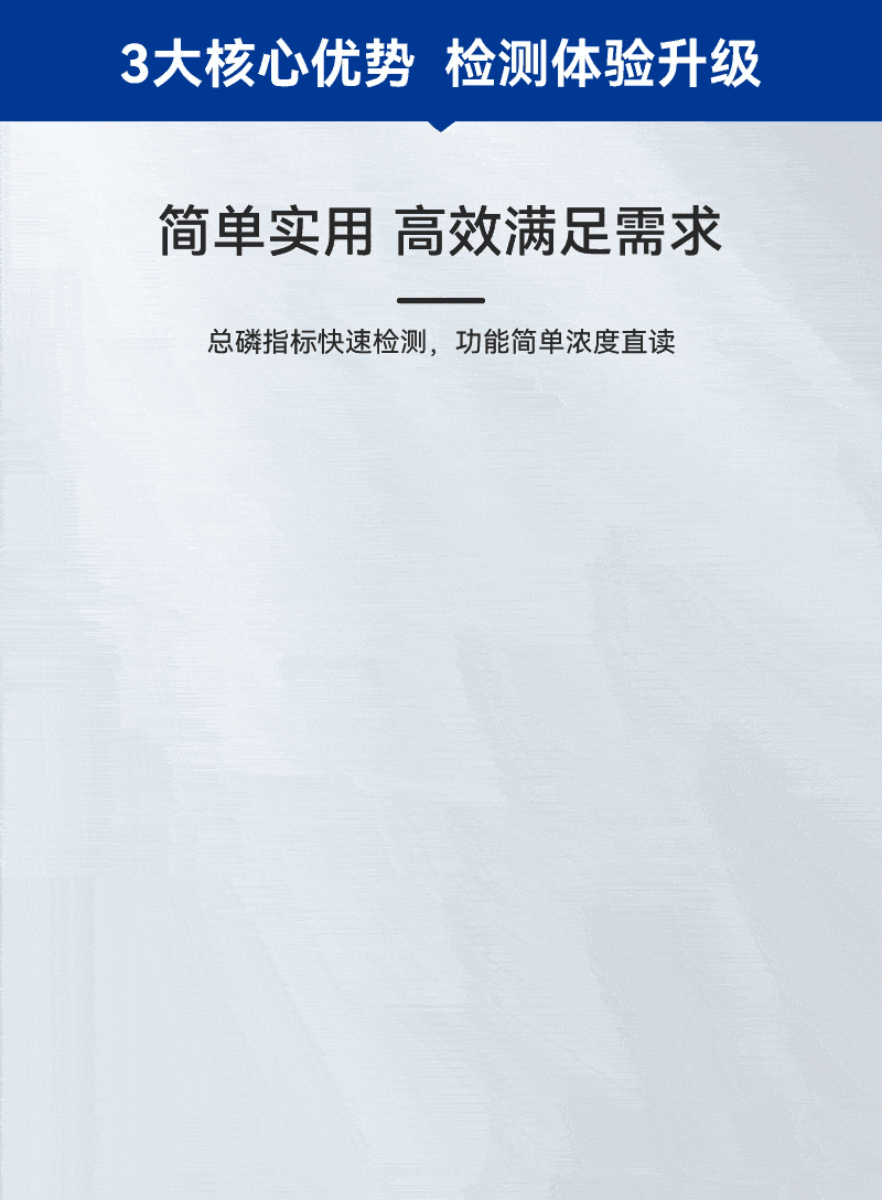 1、簡單實用高效滿足需求,總磷指標快速檢測,功能簡單濃度直讀