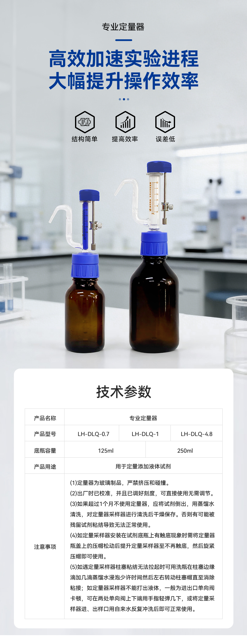 簡要描述: 結構簡單,容量選擇豐富,可用來定量添加多種溶液。