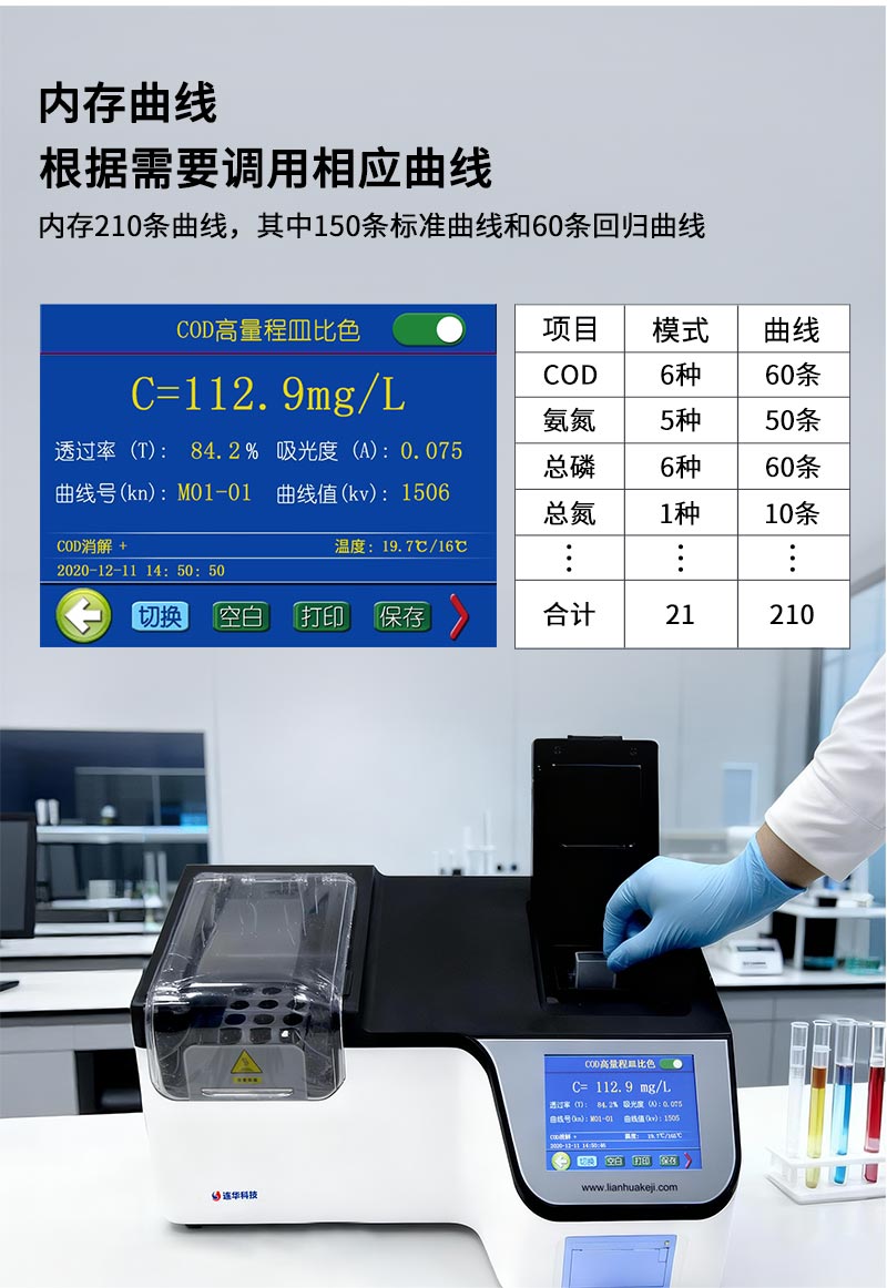 1.符合標準:設計上完全依據國家《快速消解分光光度法(HJ/T399-2007)》原理設計制造,符合JJG975-2002化學需氧量(COD)測定儀檢定規程,適用于各種生活用水和工業廢水的檢測;